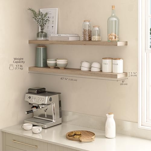 Ballucci Floating Shelves for Wall, 48″ Wood Wall Shelf Set of 2, with Invisible Brackets for Bathroom, Living Room, Bedroom, Kitchen, Nursery, 8″ Deep, Oak Finish