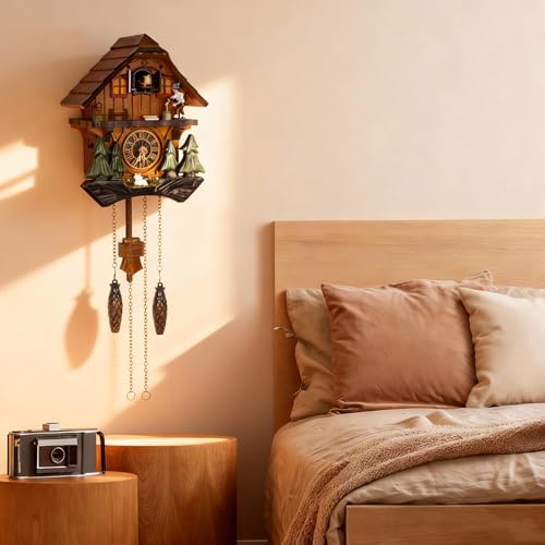 Cuckoo Clock, Germany Black Forest Style Wooden Pendulum Quartz Wall Clock, Volume Control, Night Silent, Gift Package, Professional Service