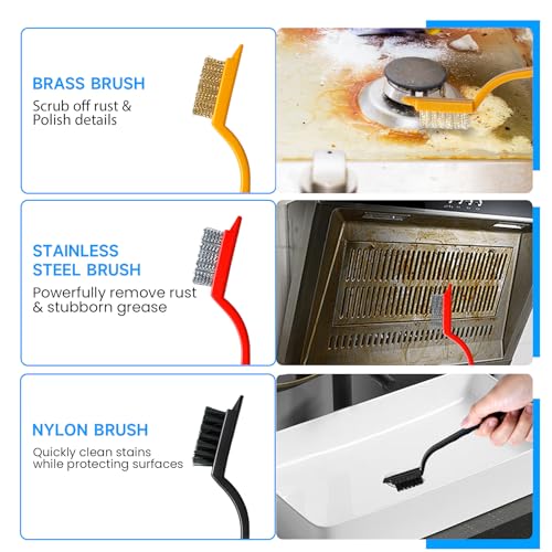 PROTECT YOUR HOME: This gap cleaning set features specially designed brushes with different bristle materials to safely clean all surfaces without damage. The grout, crevice and triangle brushes gently clean hard surfaces like tiles, floors, sinks and bathtubs without scratching, while brass brush polish metal surfaces, stainless steel brush remove rust, and nylon brush for delicate surfaces.