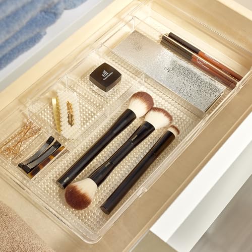 VANITY ORGANIZATION: The iDesign Clarity Vanity Organizer features multiple different-sized compartments to store your makeup, contact lenses, office supplies & more. Ideal for storing items on the counter, vanity, dresser, nightstand, or desk.