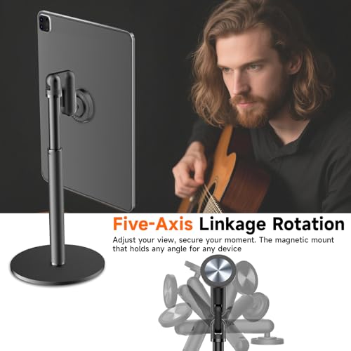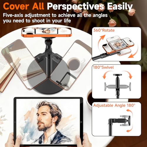 【Multi-Functional Desk Tripod】This rotating magnetic phone holder effortlessly handle various daily scenarios—desk conference, video recording, live streaming, cooking, etc. Adjust its height and angle to the optimal position, make your life much easier