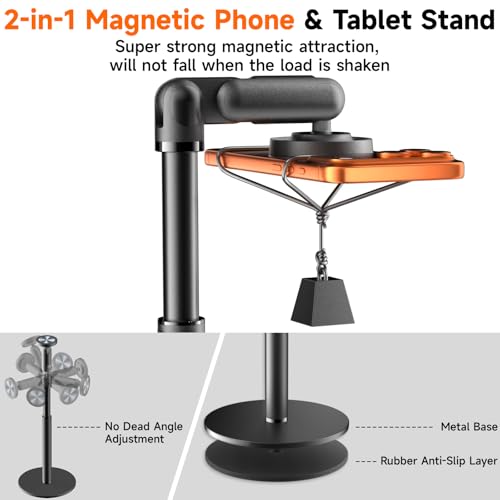 360° Rotating Magnetic Phone Stand for MagSafe, 2 in 1 Adjustable Tablet Stand & Cell Phone Stand, Aluminum Phone Holder for Desk, Compatible iPhone 17 16 15 14 13 12 Pro Max and IPad, Black