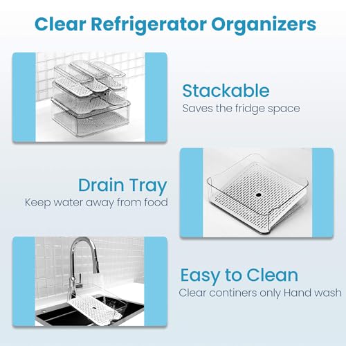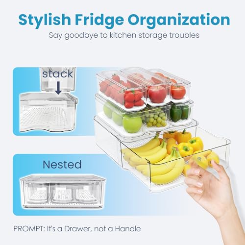 [Practical Sizes] 6-piece set: 1 pull-out drawer(11.9 x 12.4 x 4.2”) + 1 large (10.7×7.6×3.5”) + 3 medium (10.1×3.6×3.1”) + 1 small(9.6 x 3.2 x 2.7”). Fits diverse foods like grapes, carrots, cereals, and cheeses. Optimizes airflow to preserve texture.
